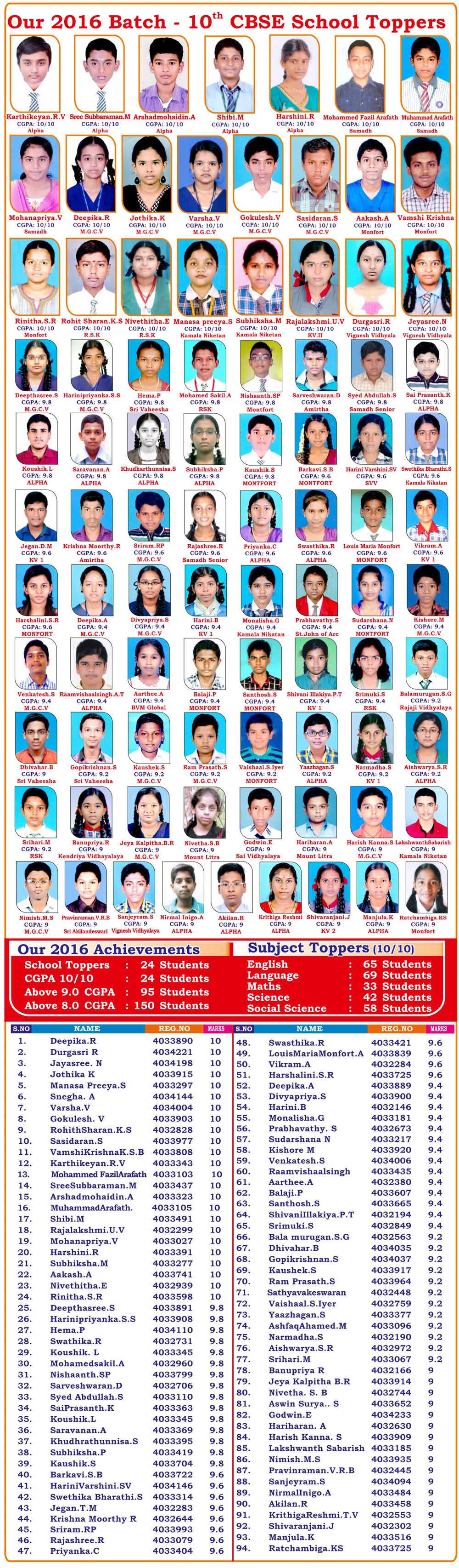CARE Achievements - X CBSE - 2016