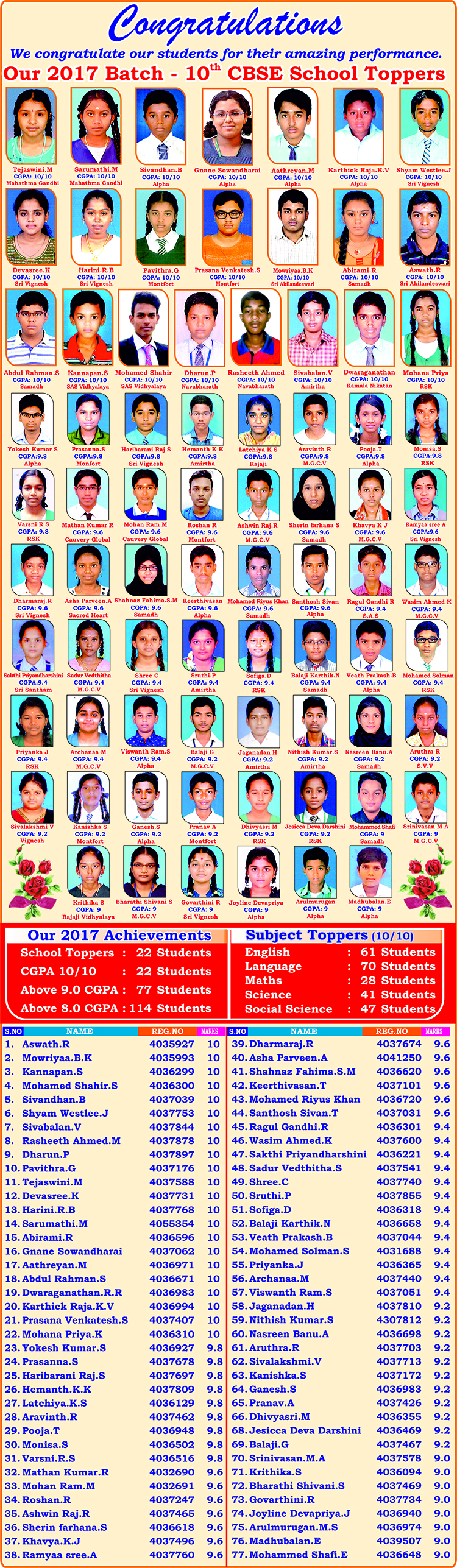 CARE Achievements - X CBSE - 2017