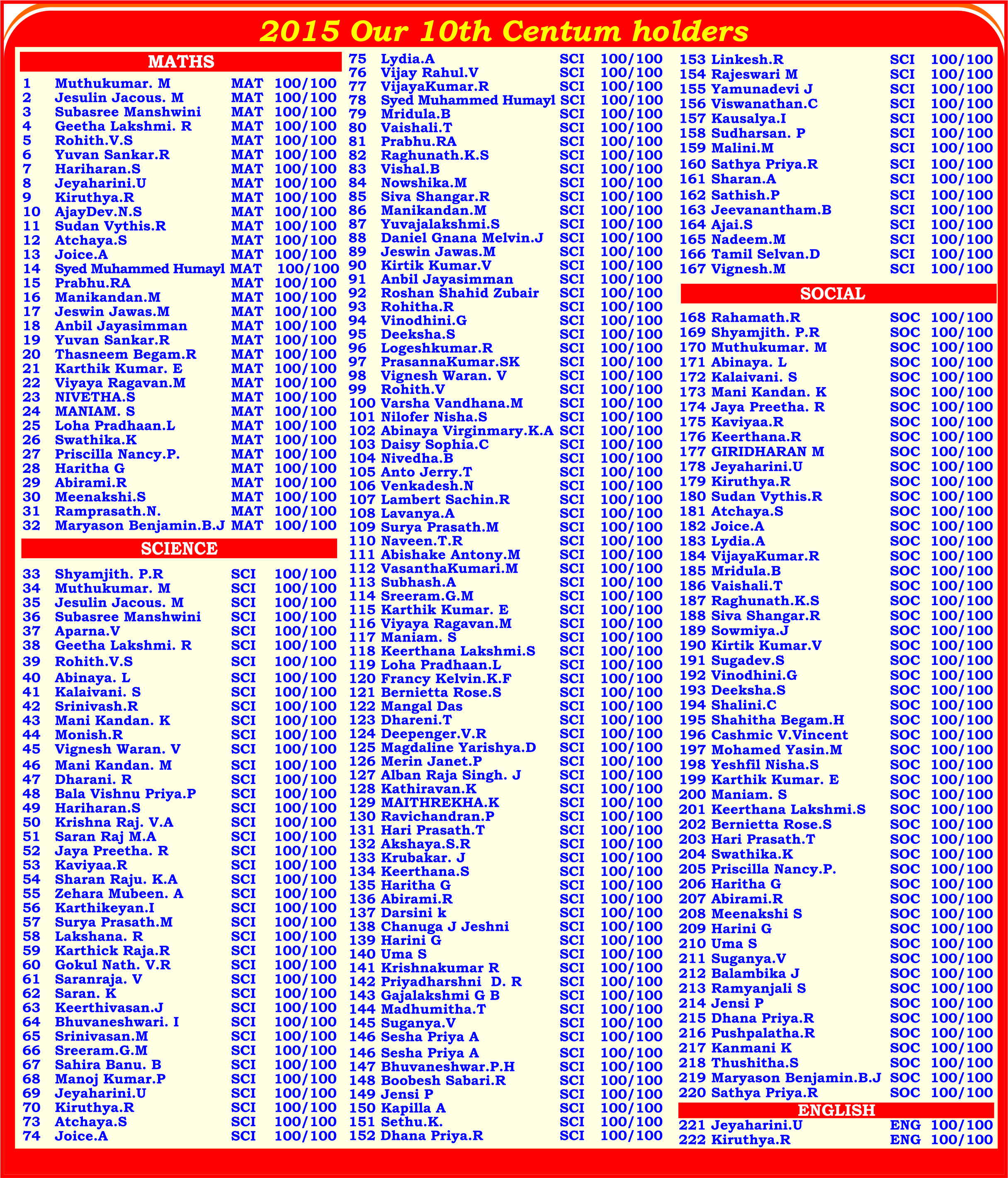 CARE Achievements - X Samacheer Kalvi - 2015